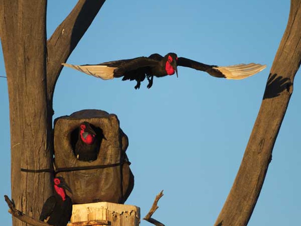 This study aims to investigate the concepts of ‘polymath interpolator’ design, and its characteristics which are defined as openness, navigation, and satisficing. The intention is to develop real-world solutions in a series of Research through Design (RtD) activities to address the sociotechnical challenge of conservation of the Southern Ground Hornbill (Bucorvus leadbeateri), in particular the development of an artificial nest strategy.