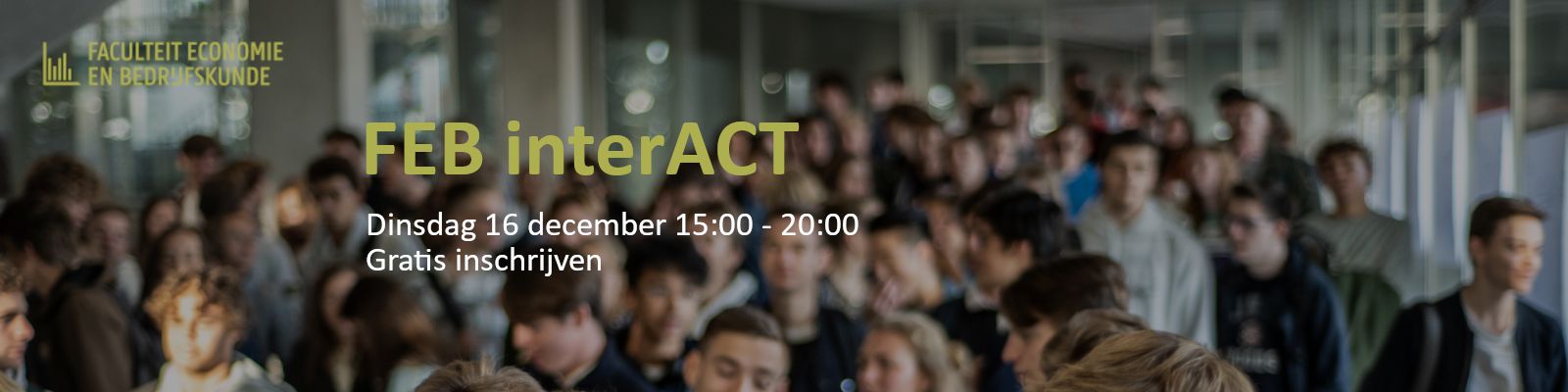 Op dinsdag 16 december organiseert de FEB het event 'FEB interACT', het gratis netwerkevent waar onderzoekers, docenten, alumni en externe partners met elkaar in gesprek gaan.