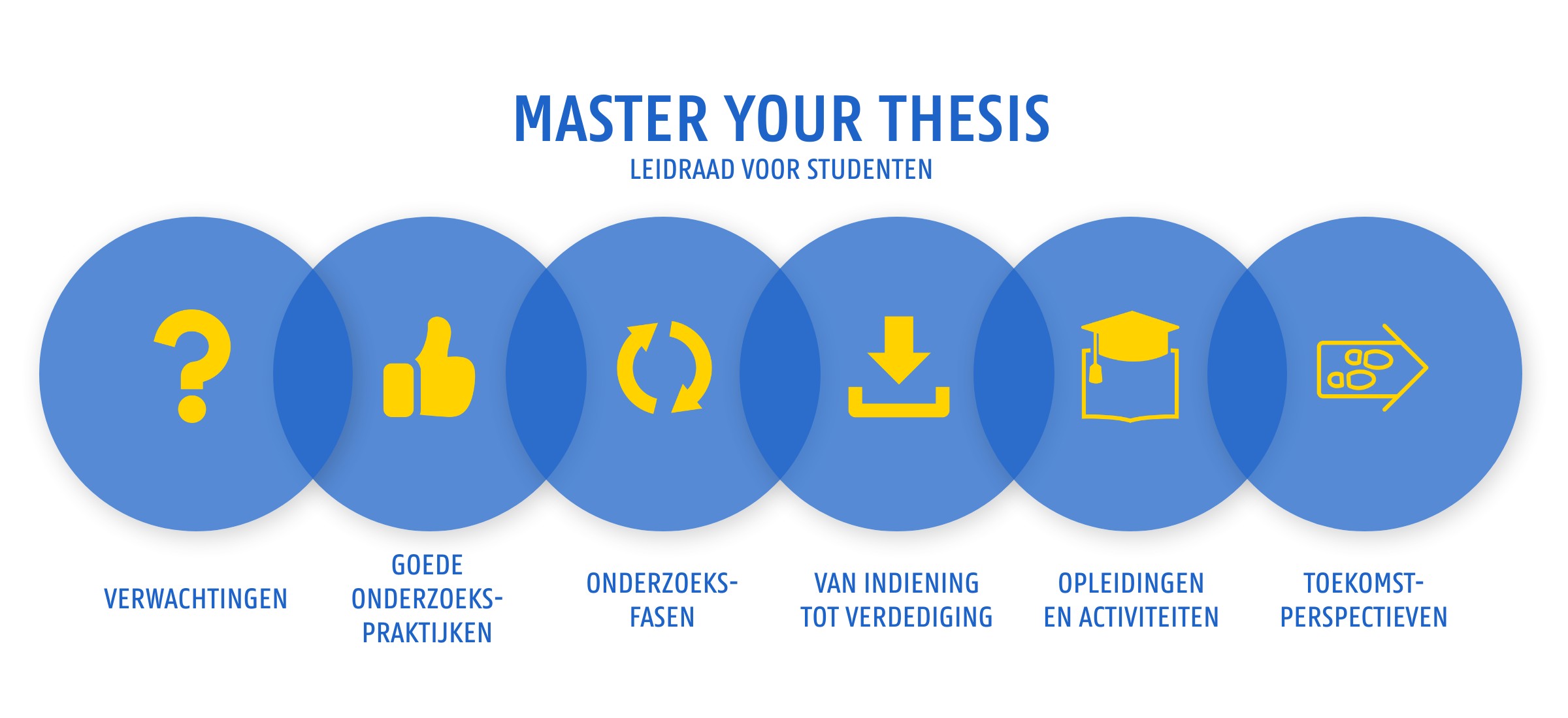 Het leerpad is opgebouwd uit zes modules en combineert zowel wetenschappelijke als praktische richtlijnen bij elke stap van het masterproefproces.