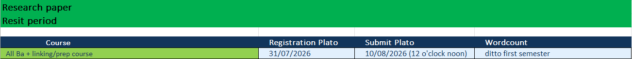 This is only for students who no longer have any second semester or year courses left in their programme and have taken the Research Paper in the previous academic year, but did not pass. This is only possible with the approval of the supervisor.