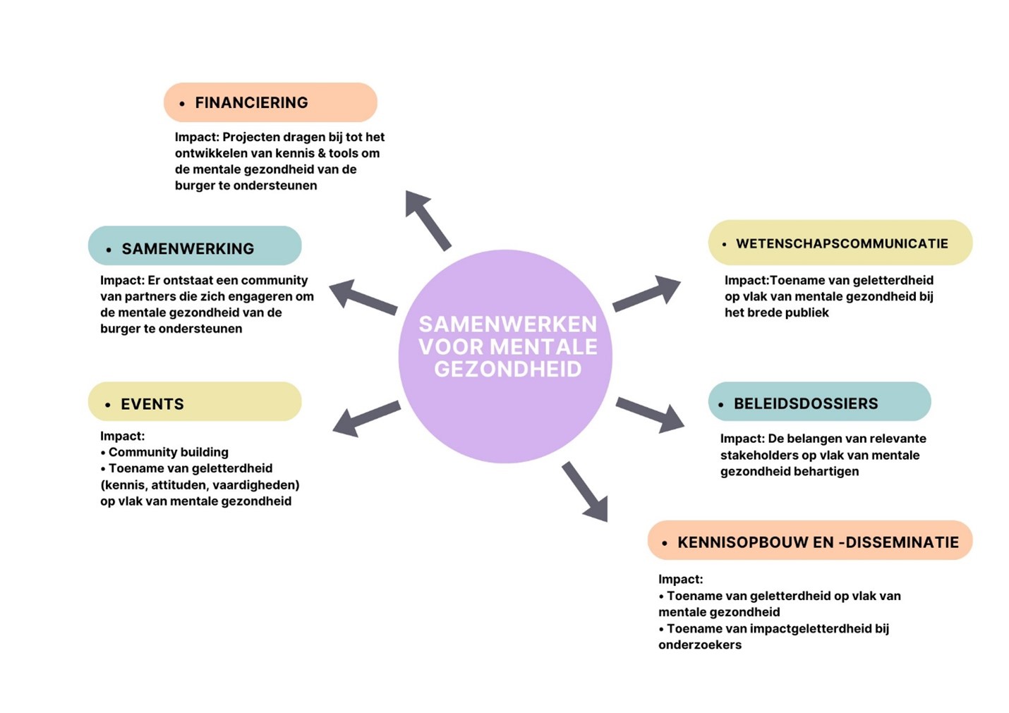 Bevorderen van de algemene kennis over mentale gezondheidsaspecten en het promoten van initiatieven daarrond.