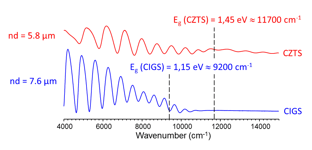 For photon energies near and above the band-gap of the absorber layer, the interference franges get damped out due to absorption of light in the thin film.