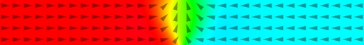 The figure below shows a transverse domain wall in a permalloy nanostrip with the magnetization direction indicated by the direction of the arrows and the color.