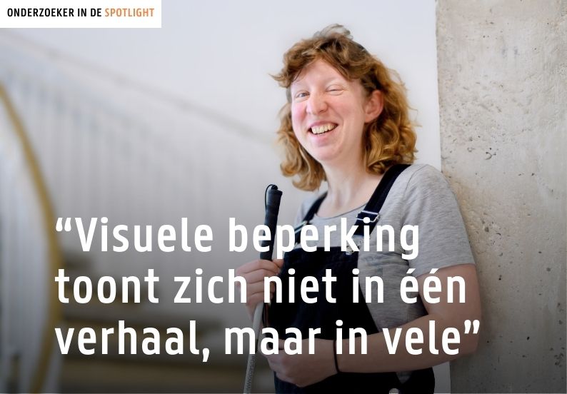 Wat mij het meest raakt, is dat dit onderzoek niet alleen wetenschappelijke kennis oplevert, maar ook een persoonlijk cadeau is. Ik had altijd verwacht dat ik onderzoek zou doen over visuele beperking, maar doordat ik zelf een visuele beperking heb, merk ik hoe waardevol het is om via dit werk ook mijn eigen kijk voortdurend te verruimen. Reflecteren over en met blindheid geeft mij de ruimte om blindheid telkens opnieuw te herdenken, te conceptualiseren en anders te verbeelden. Daarnaast blijft mijn appreciatie en bewondering groeien voor hoe personen met een visuele beperking hun leven vormgeven, altijd in relatie tot de mensen om hen heen.