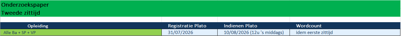 - In de loop van mei 2026 de onderzoekspaper indienen in elektronische vorm (via Plato). Voor de exacte datum: zie website FSA.