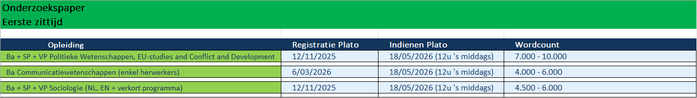 - In de loop van mei 2026 de onderzoekspaper indienen in elektronische vorm (via Plato). Voor de exacte datum: zie website FSA.