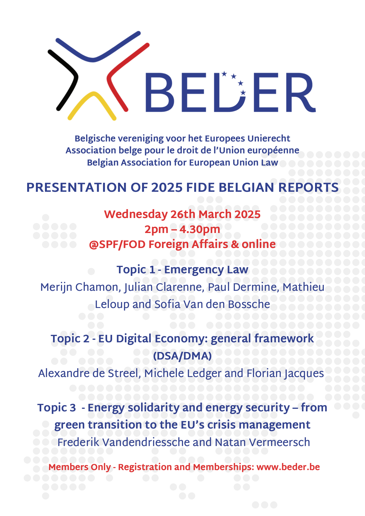 Dit evenement, voorbehouden voor BEDER-leden, wordt georganiseerd in hybride formaat en zal plaatsvinden van 14u tot 16u30.