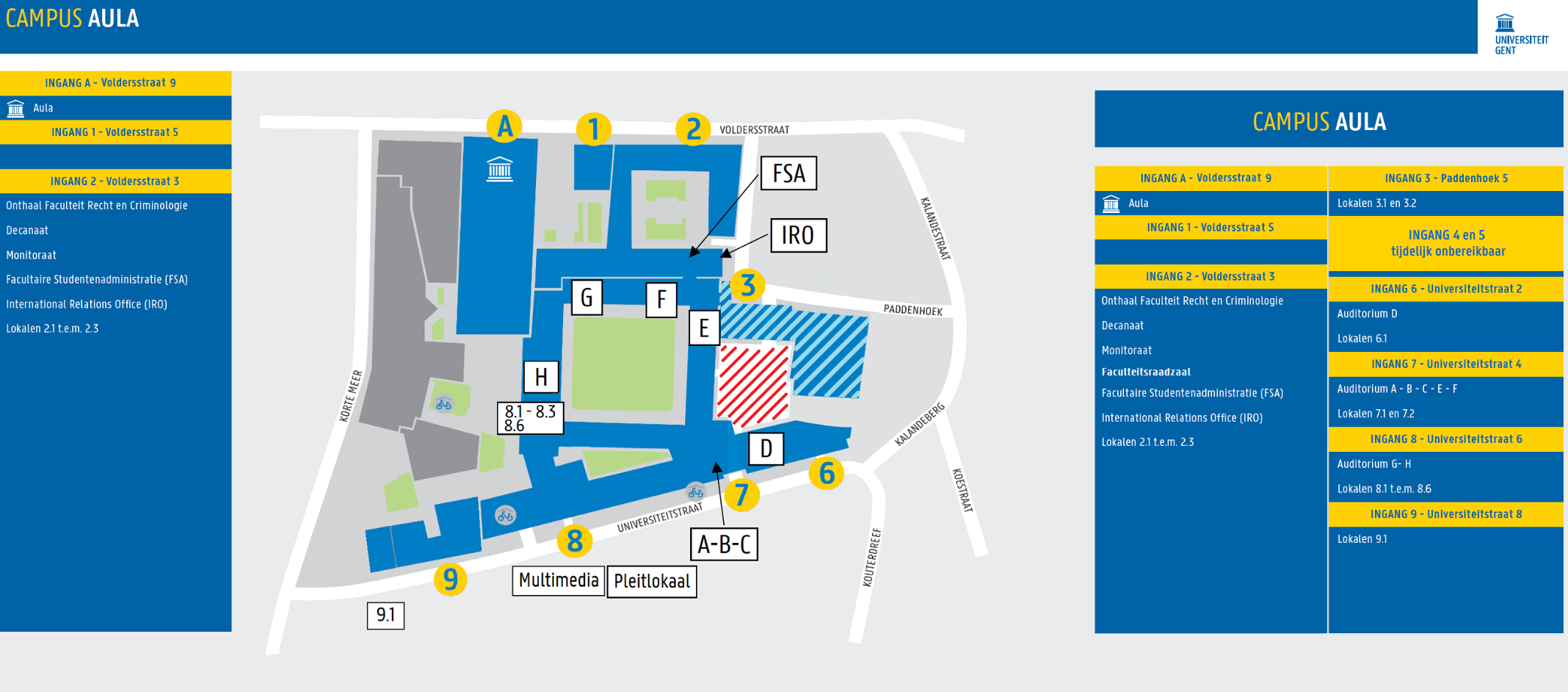 - Facultaire StudentenAdministratie (FSA): Voldersstraat 3 (Zuidvleugel), gelijkvloers