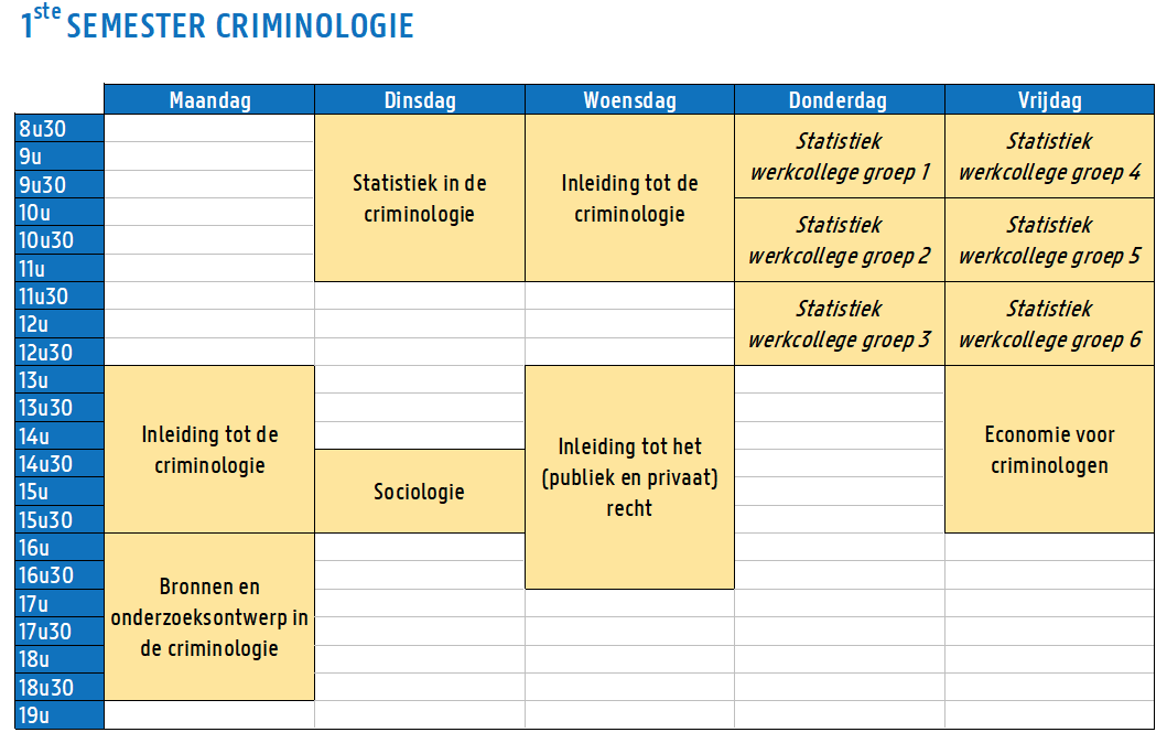 Wil je daarentegen leren nadenken over criminologische fenomenen op beleidsniveau? Schrikken grote hoeveelheden leerstof, zelfstandig werk en statistiek je niet af? Dan is deze opleiding iets voor jou.