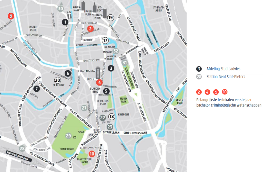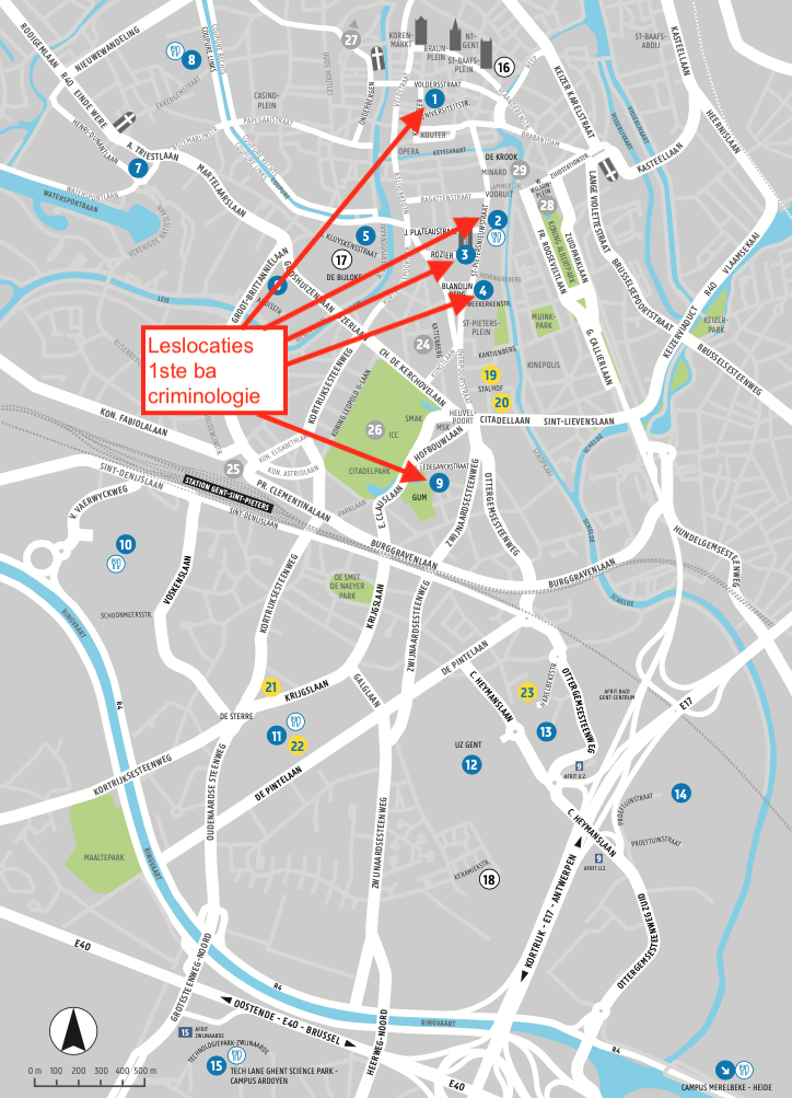 Onze faculteit is gelegen in het hart van de stad Gent, tussen de Universiteitstraat en de Voldersstraat.