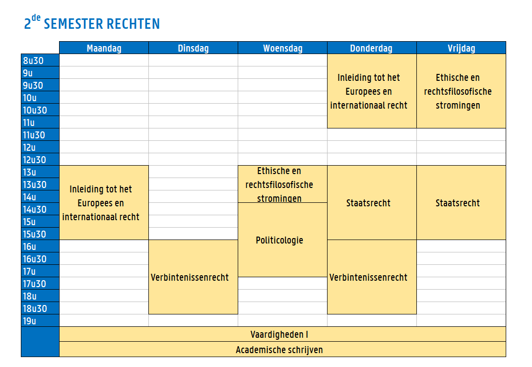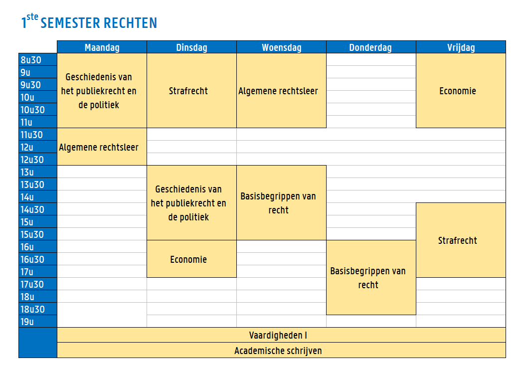 Wie rechten studeert, wordt niet automatisch advocaat, magistraat of notaris. Ook binnen bedrijven en overheidsdiensten of in de politieke wereld kunnen juristen aan de slag. Tijdens de opleiding komen dan ook heel uiteenlopende rechtstakken aan bod en word je ondergedompeld in een brede waaier aan juridische situaties en problemen.