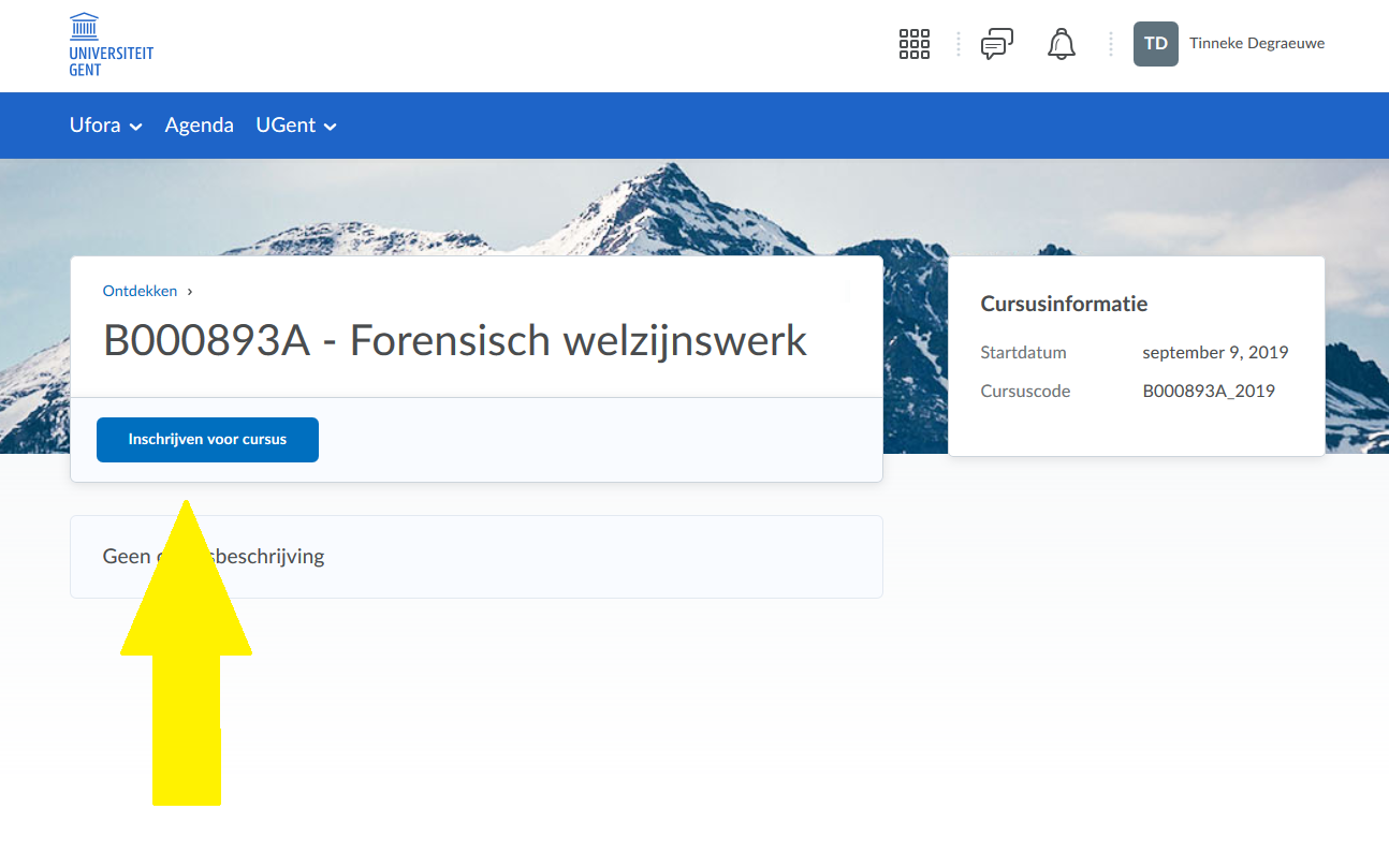 Open Ufora en klik in de rechterkolom op 'inschrijven in cursus'.