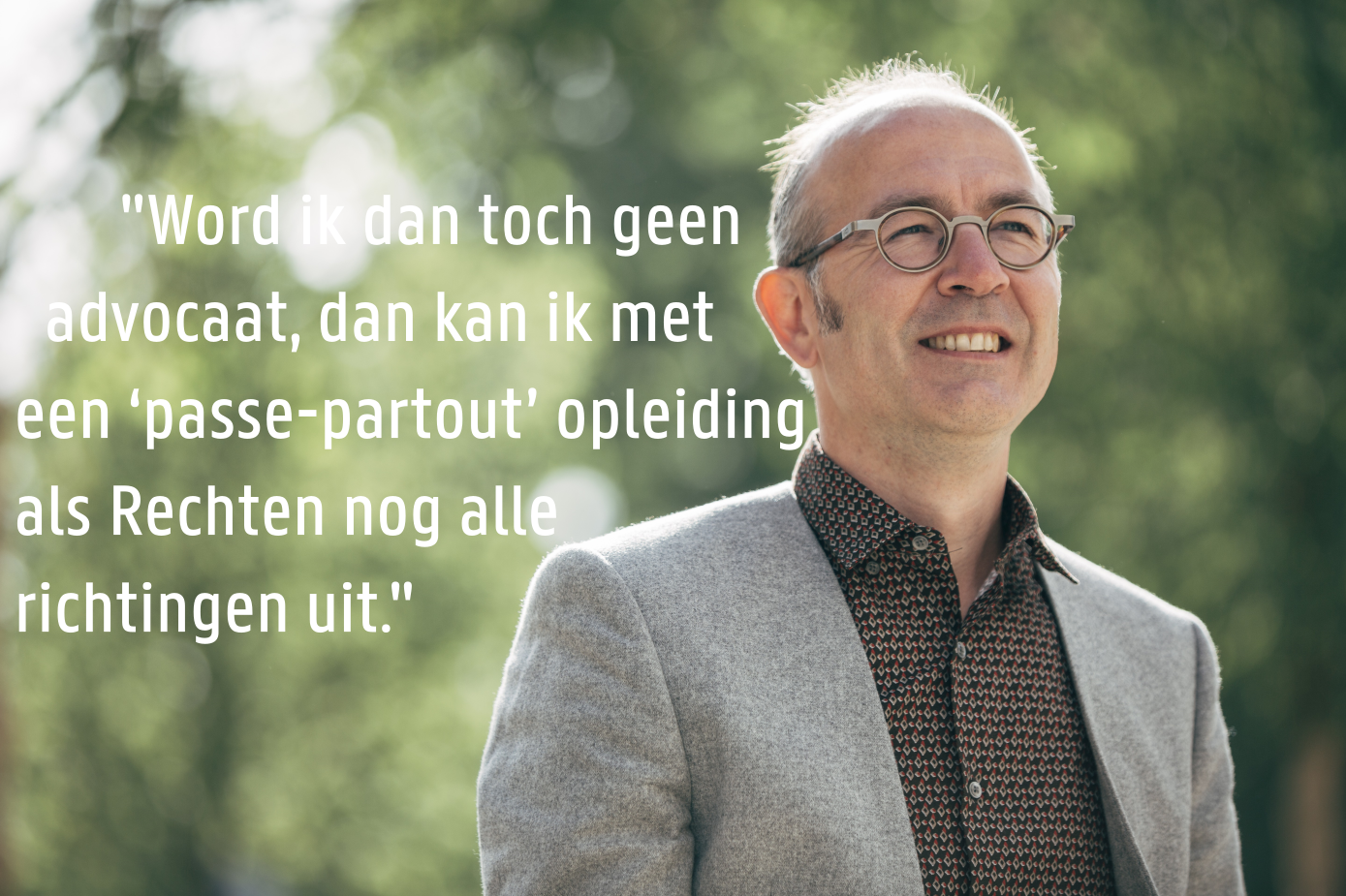 Waar ga je aan de slag met je diploma Rechten? Afgestudeerden van onze faculteit maken je wegwijs doorheen de verschillende beroepsmogelijkheden en geven je tips die je helpen bij je studiekeuze. Maak kennis met onder meer de bankensector, de NGO-wereld en de journalistiek. Verneem ook meer over de magistratuur, het notariaat en de advocatuur of duik in de wereld van de bedrijfsjuristen.