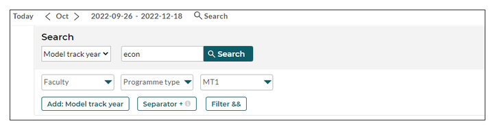 - Choose whether you want to look for the timetable of a model track year, or of one or more courses.
