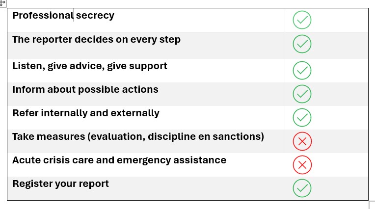 The Trustpunt confidential counsellors are there for you for all your questions about and reports concerning transgressive behaviour. Do you have a different question or issue? Then take a look at the webpage Feeling Good for the contact details of experts and emergency support.