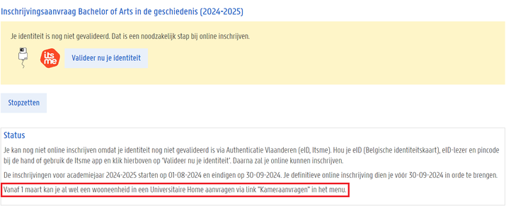 Als je uiteindelijk een groen licht krijgt, dan mag je uiteraard gewoon je kamer behouden voor het academiejaar.