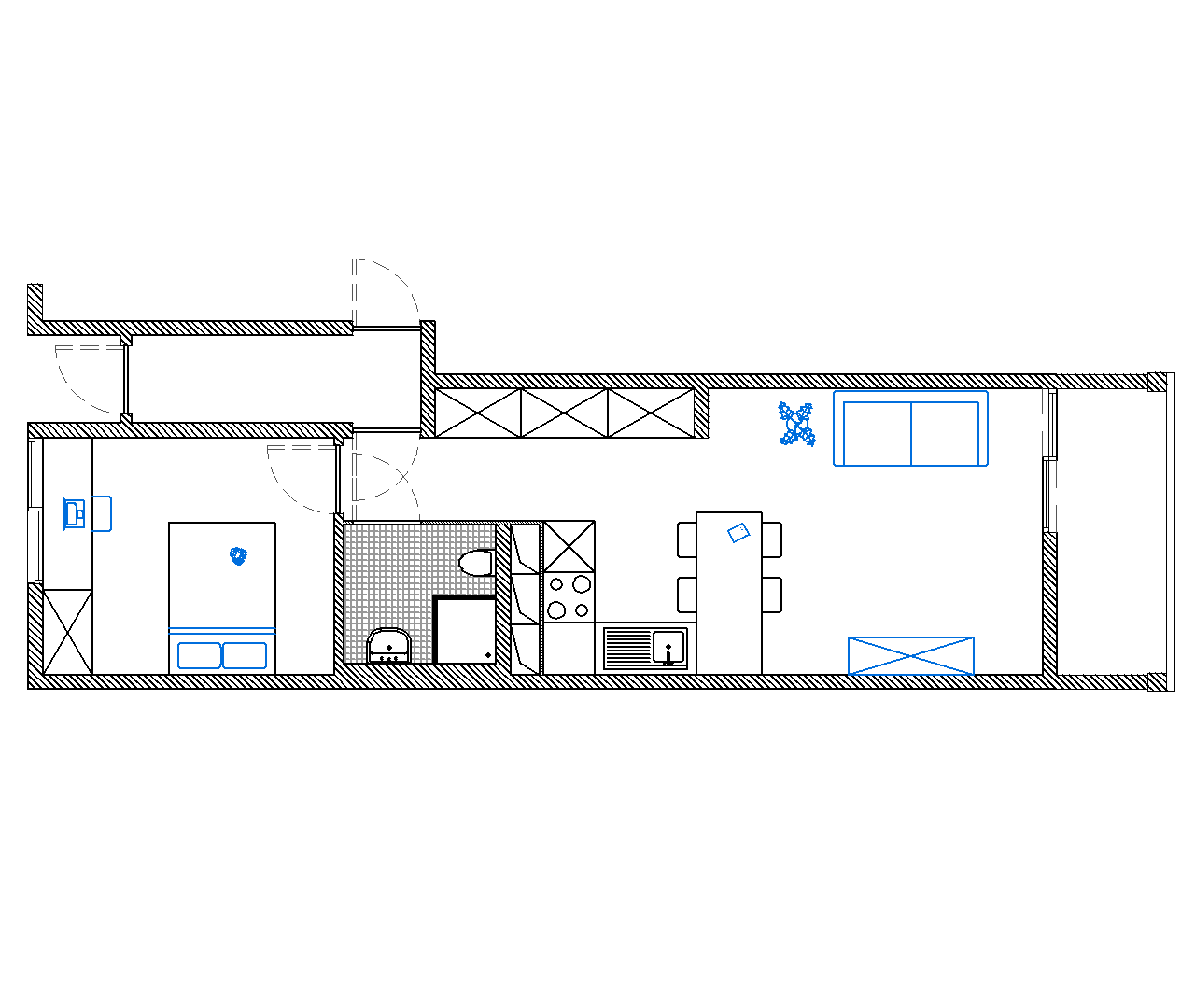 - Gemeubileerd (ingemaakte halkast, tafel en 4 stoelen)