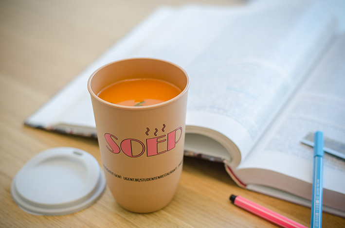 Vorig academiejaar is voor bijna 40% van de soepen een wegwerpsoepbeker aangekocht!