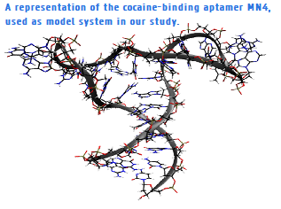 The detection of cocaine and other important targets on site, with high selectivity remains a challenging area of research. In this project, we wish to better understand and eventually improve analytical detection systems that use short DNA sequences for selective recognition of molecules of interest – called aptamers – followed by the generation of electrical currents for its detection. This should ultimately lead to improved, robust, simple and mobile devices capable of being handled on site in different fields of application (e.g. law enforcement agencies, medical care environment, food industry). To achieve this we will first study the influence of structure and flexibility of aptamers in binding and current generation, this will be mapped using computer modelling, NMR spectroscopy and ITC measurements. After obtaining structural knowledge, we will chemically stabilize the high affinity aptamers in order to manufacture robust and ready for the market biosensors.